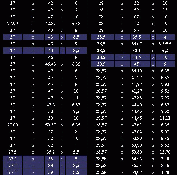 od 27 - 29 mm